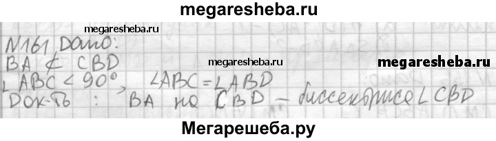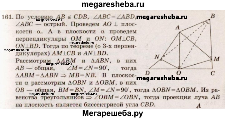 161. Луч ВА не лежит в плоскости неразвернутого угла CBD. Докажите, что если угол ABC = углу ABD, причем угол АВС < 90°, то проекцией луча ВА на плоскость CBD является биссектриса угла CBD.