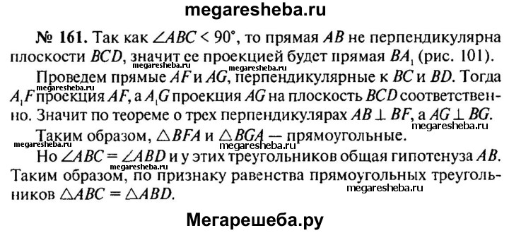 Подробный решебник (ГДЗ) по Геометрии за 10‐11 (десятый‐одиннадцатый) класс - готовый ответ 10 класс - 161. Авторы учебника: Атанасян, Бутузов, Кадомцев, Киселева, Позняк, Базовый и углубленный уровень. Издательство: Просвещение 2015-2023.