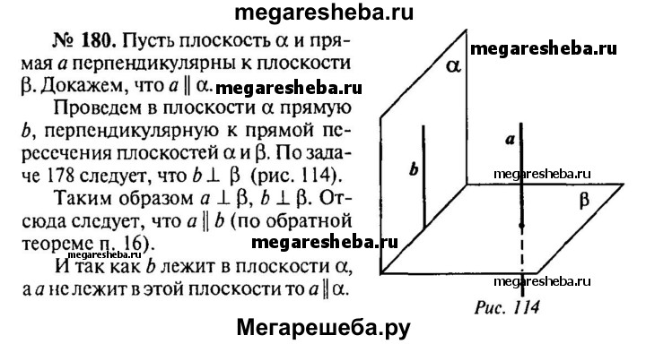180. Докажите, что плоскость и не лежащая в ней прямая, перпендикулярные к одной и той же плоскости, параллельны.