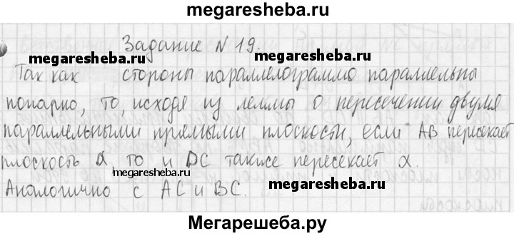 Подробный решебник (ГДЗ) по Геометрии за 10‐11 (десятый‐одиннадцатый) класс - готовый ответ 10 класс - 19. Авторы учебника: Атанасян, Бутузов, Кадомцев, Киселева, Позняк, Базовый и углубленный уровень. Издательство: Просвещение 2015-2023.