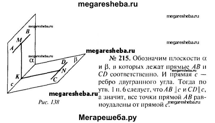Подробный решебник (ГДЗ) по Геометрии за 10‐11 (десятый‐одиннадцатый) класс - готовый ответ 10 класс - 215. Авторы учебника: Атанасян, Бутузов, Кадомцев, Киселева, Позняк, Базовый и углубленный уровень. Издательство: Просвещение 2015-2023.