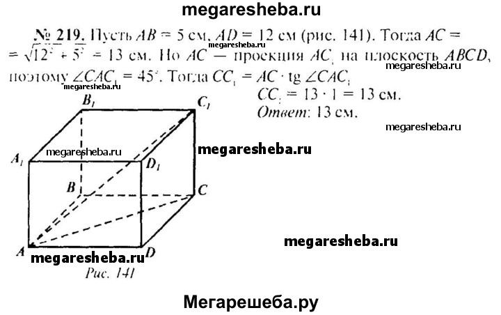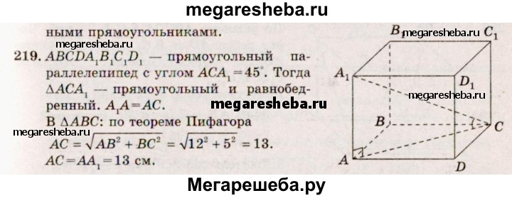 Подробный решебник (ГДЗ) по Геометрии за 10‐11 (десятый‐одиннадцатый) класс - готовый ответ 10 класс - 219. Авторы учебника: Атанасян, Бутузов, Кадомцев, Киселева, Позняк, Базовый и углубленный уровень. Издательство: Просвещение 2015-2023.