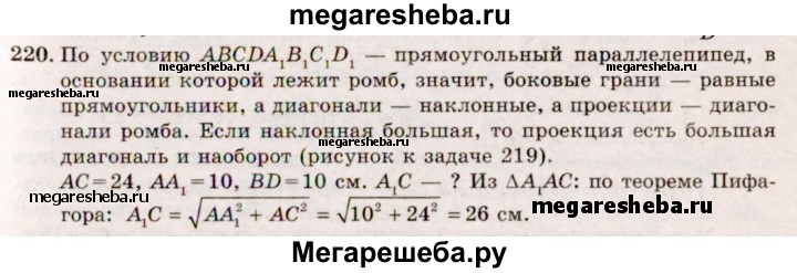 Подробный решебник (ГДЗ) по Геометрии за 10‐11 (десятый‐одиннадцатый) класс - готовый ответ 10 класс - 220. Авторы учебника: Атанасян, Бутузов, Кадомцев, Киселева, Позняк, Базовый и углубленный уровень. Издательство: Просвещение 2015-2023.