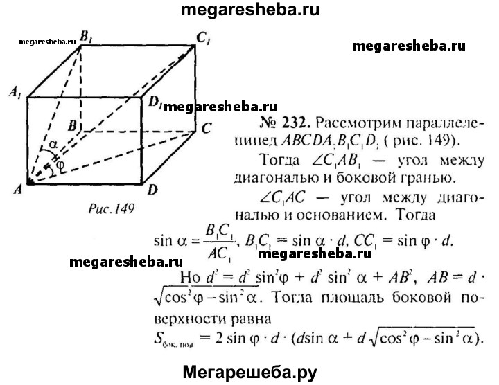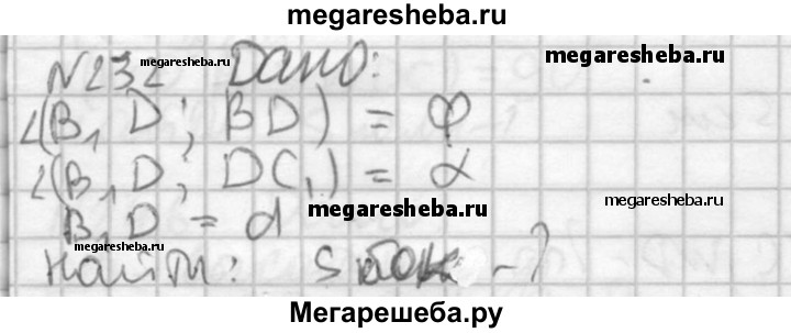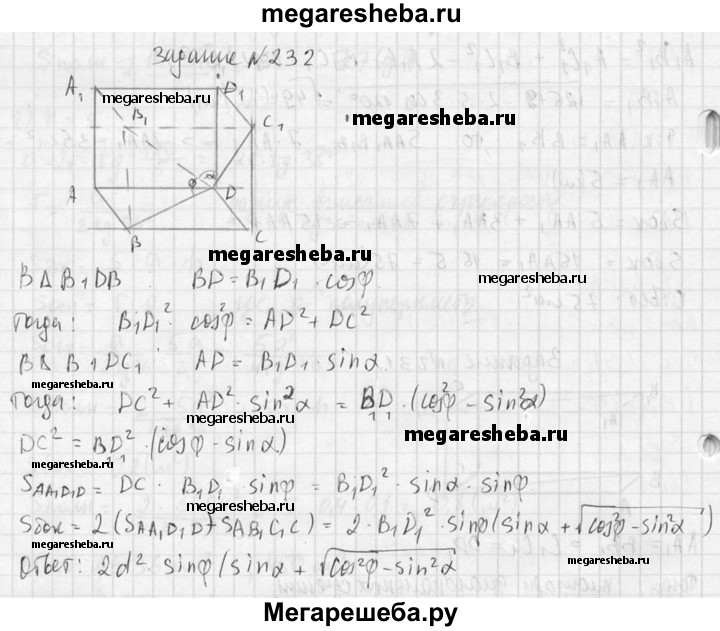 Подробный решебник (ГДЗ) по Геометрии за 10‐11 (десятый‐одиннадцатый) класс - готовый ответ 10 класс - 232. Авторы учебника: Атанасян, Бутузов, Кадомцев, Киселева, Позняк, Базовый и углубленный уровень. Издательство: Просвещение 2015-2023.