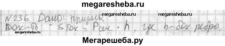 Подробный решебник (ГДЗ) по Геометрии за 10‐11 (десятый‐одиннадцатый) класс - готовый ответ 10 класс - 236. Авторы учебника: Атанасян, Бутузов, Кадомцев, Киселева, Позняк, Базовый и углубленный уровень. Издательство: Просвещение 2015-2023.