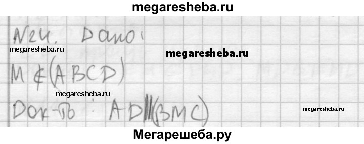 24. Точка М не лежит в плоскости трапеции ABCD с основанием AD. Докажите, что прямая AD параллельна плоскости ВМС.