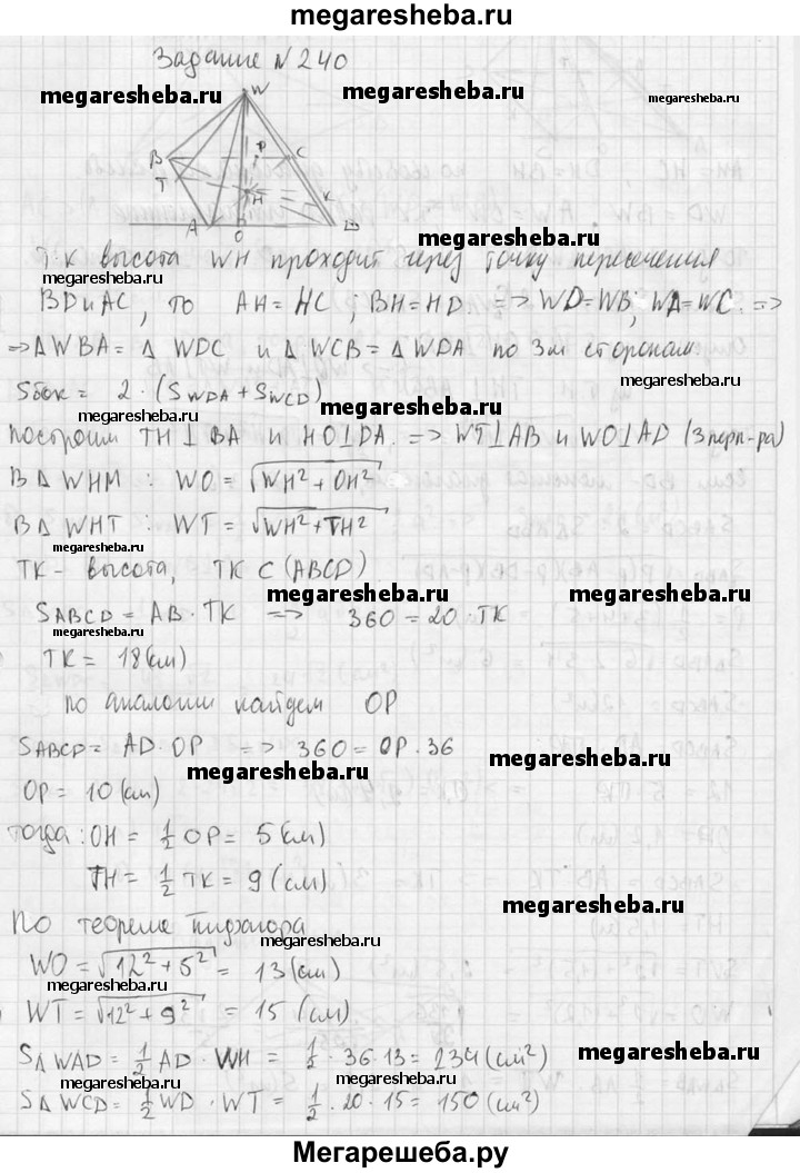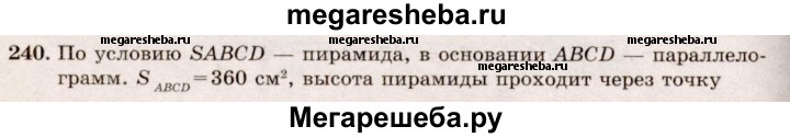 Подробный решебник (ГДЗ) по Геометрии за 10‐11 (десятый‐одиннадцатый) класс - готовый ответ 10 класс - 240. Авторы учебника: Атанасян, Бутузов, Кадомцев, Киселева, Позняк, Базовый и углубленный уровень. Издательство: Просвещение 2015-2023.