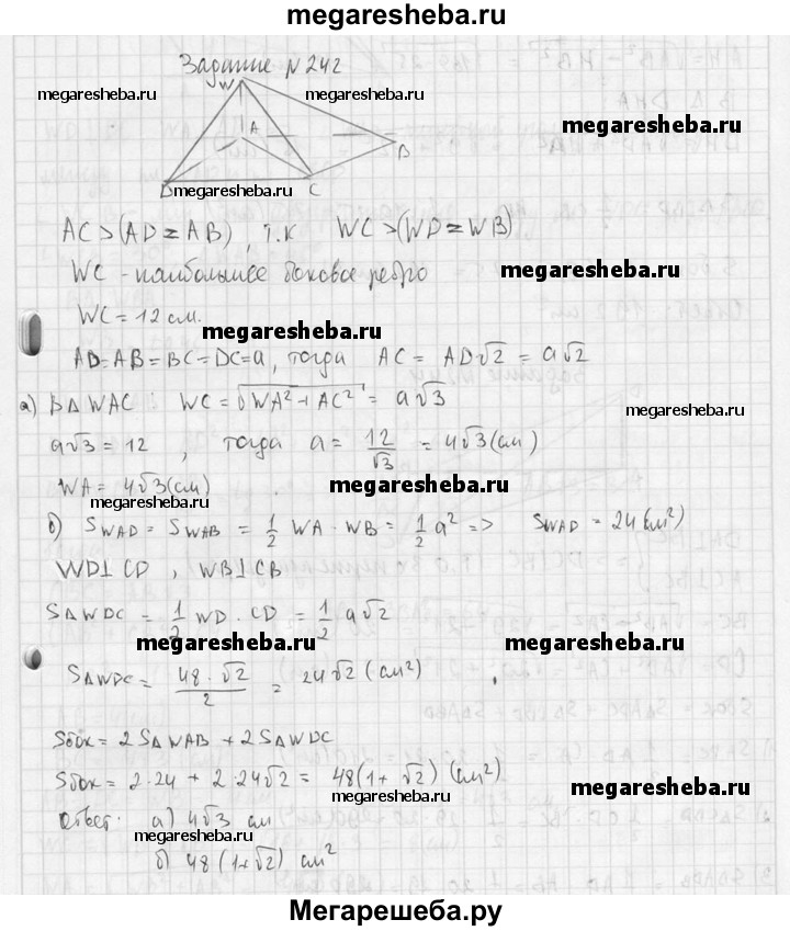 Подробный решебник (ГДЗ) по Геометрии за 10‐11 (десятый‐одиннадцатый) класс - готовый ответ 10 класс - 242. Авторы учебника: Атанасян, Бутузов, Кадомцев, Киселева, Позняк, Базовый и углубленный уровень. Издательство: Просвещение 2015-2023.