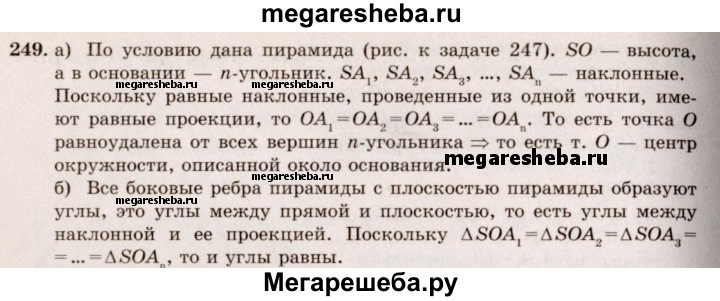 Подробный решебник (ГДЗ) по Геометрии за 10‐11 (десятый‐одиннадцатый) класс - готовый ответ 10 класс - 249. Авторы учебника: Атанасян, Бутузов, Кадомцев, Киселева, Позняк, Базовый и углубленный уровень. Издательство: Просвещение 2015-2023.