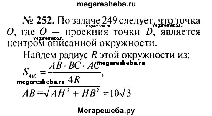 Подробный решебник (ГДЗ) по Геометрии за 10‐11 (десятый‐одиннадцатый) класс - готовый ответ 10 класс - 252. Авторы учебника: Атанасян, Бутузов, Кадомцев, Киселева, Позняк, Базовый и углубленный уровень. Издательство: Просвещение 2015-2023.
