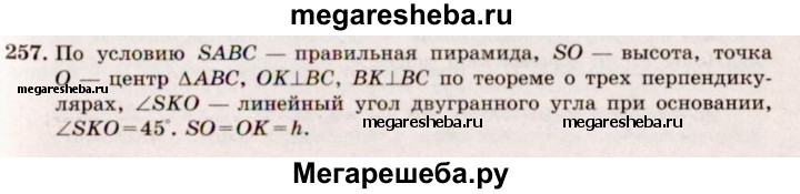 Подробный решебник (ГДЗ) по Геометрии за 10‐11 (десятый‐одиннадцатый) класс - готовый ответ 10 класс - 257. Авторы учебника: Атанасян, Бутузов, Кадомцев, Киселева, Позняк, Базовый и углубленный уровень. Издательство: Просвещение 2015-2023.