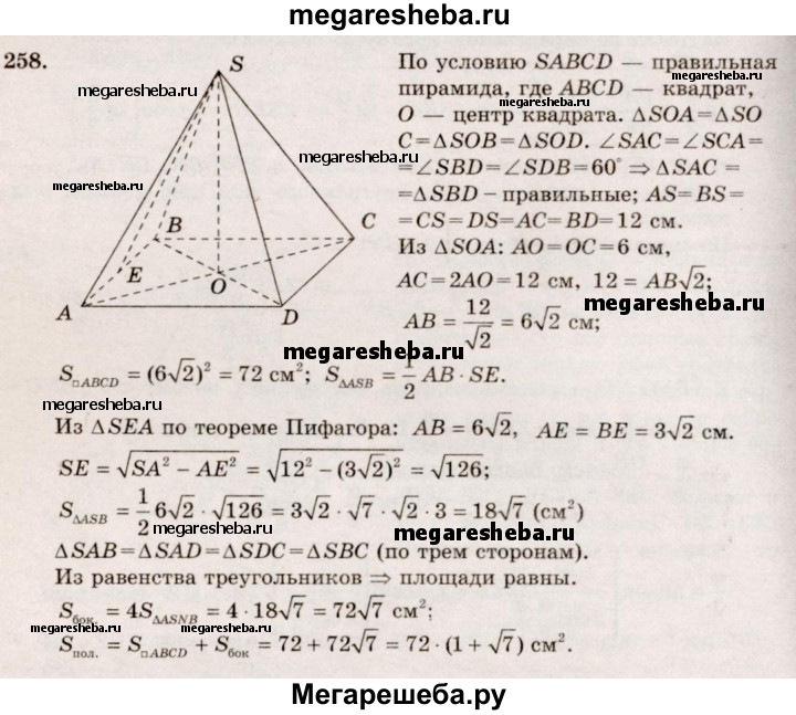 Подробный решебник (ГДЗ) по Геометрии за 10‐11 (десятый‐одиннадцатый) класс - готовый ответ 10 класс - 258. Авторы учебника: Атанасян, Бутузов, Кадомцев, Киселева, Позняк, Базовый и углубленный уровень. Издательство: Просвещение 2015-2023.
