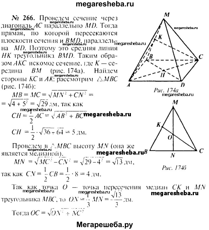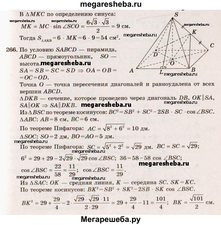 Подробный решебник (ГДЗ) по Геометрии за 10‐11 (десятый‐одиннадцатый) класс - готовый ответ 10 класс - 266. Авторы учебника: Атанасян, Бутузов, Кадомцев, Киселева, Позняк, Базовый и углубленный уровень. Издательство: Просвещение 2015-2023.