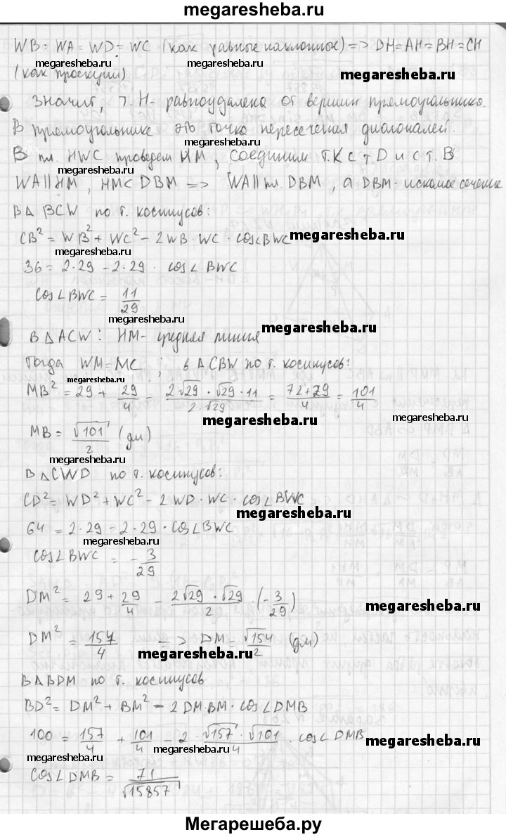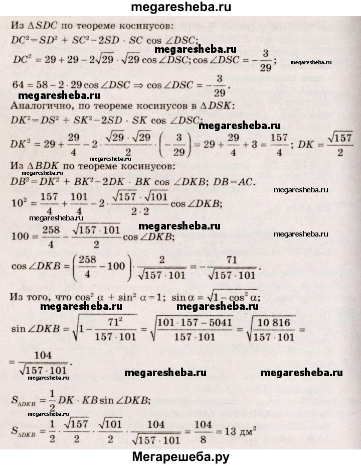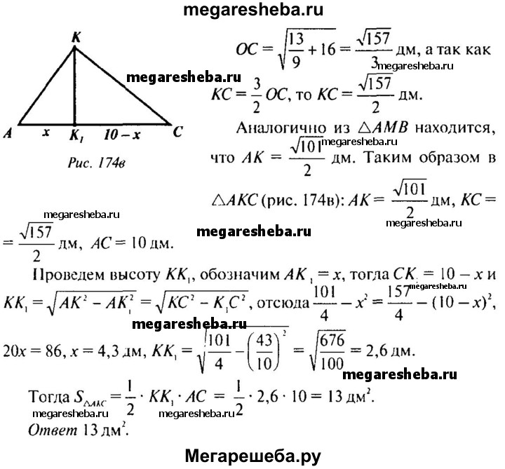 266. Основанием пирамиды, высота которой равна 2 дм, а боковые ребра равны друг другу, является прямоугольник со сторонами 6 дм и 8 дм. Найдите площадь сечения, проведенного через диагональ основания параллельно боковому ребру.
