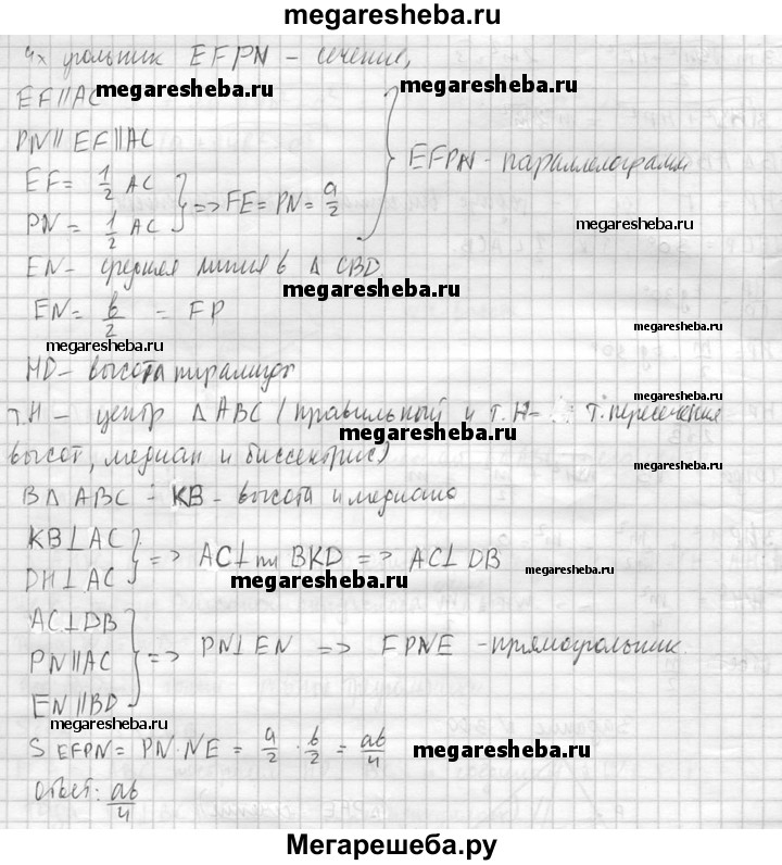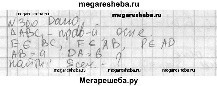 300. В правильной треугольной пирамиде DABC точки Е, F и Р — середины сторон ВС, АВ и AD. Определите вид сечения, проходящего через эти точки, и найдите его площадь, если сторона основания пирамиды равна а, боковое ребро равно b.