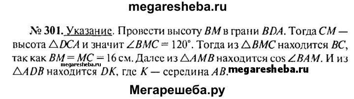 Подробный решебник (ГДЗ) по Геометрии за 10‐11 (десятый‐одиннадцатый) класс - готовый ответ 10 класс - 301. Авторы учебника: Атанасян, Бутузов, Кадомцев, Киселева, Позняк, Базовый и углубленный уровень. Издательство: Просвещение 2015-2023.