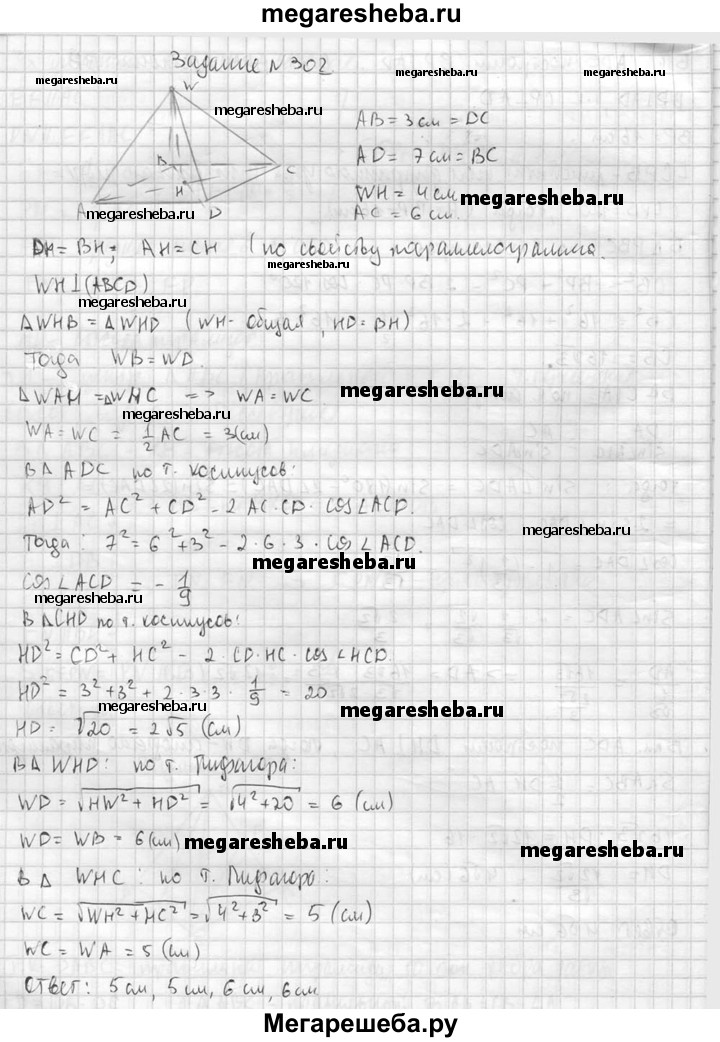 Подробный решебник (ГДЗ) по Геометрии за 10‐11 (десятый‐одиннадцатый) класс - готовый ответ 10 класс - 302. Авторы учебника: Атанасян, Бутузов, Кадомцев, Киселева, Позняк, Базовый и углубленный уровень. Издательство: Просвещение 2015-2023.