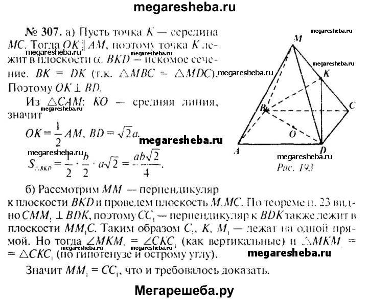 ГДЗ по геометрии 10‐11 класс Атанасян Базовый и углубленный уровень 10 класс - 307