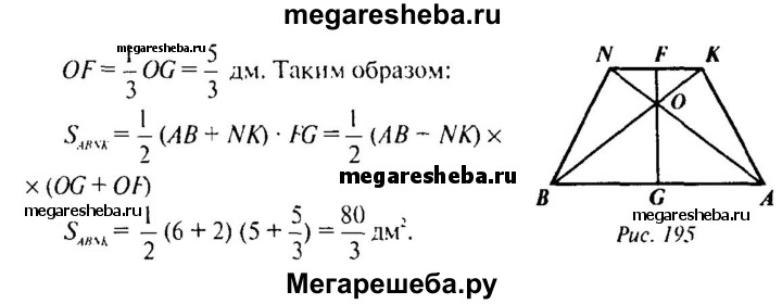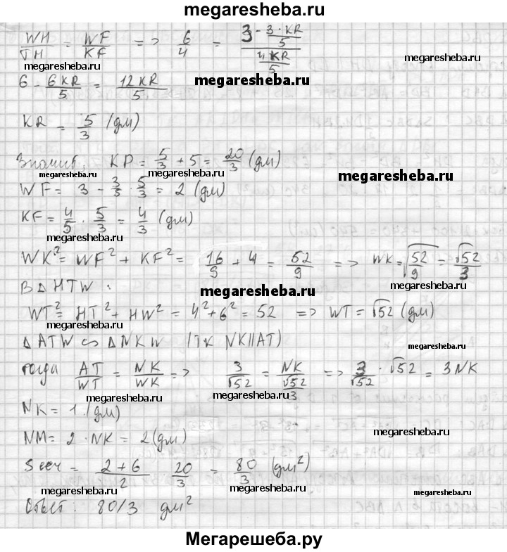 309. Основанием пирамиды с равными боковыми ребрами является прямоугольник со сторонами 6 дм и 8 дм. Высота пирамиды равна 6 дм. Найдите площадь сечения, проведенного через меньшую сторону и середину высоты.