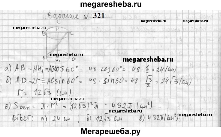 Подробный решебник (ГДЗ) по Геометрии за 10‐11 (десятый‐одиннадцатый) класс - готовый ответ 10 класс - 321. Авторы учебника: Атанасян, Бутузов, Кадомцев, Киселева, Позняк, Базовый и углубленный уровень. Издательство: Просвещение 2015-2023.