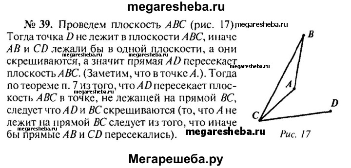 39. Докажите, что если АВ и CD скрещивающиеся прямые, то AD и ВС также скрещивающиеся прямые.