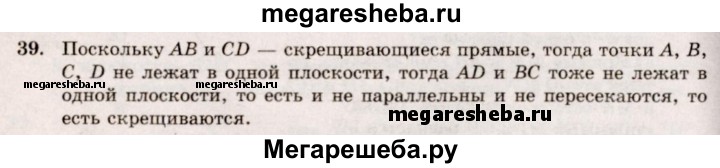 Подробный решебник (ГДЗ) по Геометрии за 10‐11 (десятый‐одиннадцатый) класс - готовый ответ 10 класс - 39. Авторы учебника: Атанасян, Бутузов, Кадомцев, Киселева, Позняк, Базовый и углубленный уровень. Издательство: Просвещение 2015-2023.