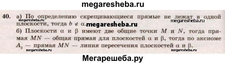 Подробный решебник (ГДЗ) по Геометрии за 10‐11 (десятый‐одиннадцатый) класс - готовый ответ 10 класс - 40. Авторы учебника: Атанасян, Бутузов, Кадомцев, Киселева, Позняк, Базовый и углубленный уровень. Издательство: Просвещение 2015-2023.
