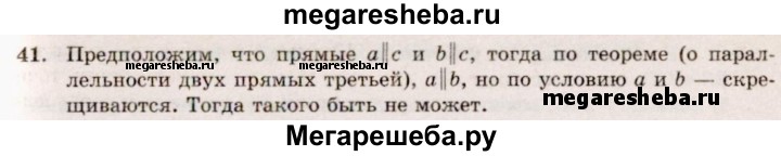 Подробный решебник (ГДЗ) по Геометрии за 10‐11 (десятый‐одиннадцатый) класс - готовый ответ 10 класс - 41. Авторы учебника: Атанасян, Бутузов, Кадомцев, Киселева, Позняк, Базовый и углубленный уровень. Издательство: Просвещение 2015-2023.