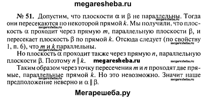 51. Докажите, что плоскости α и b параллельны, если две пересекающиеся прямые m и n плоскости α параллельны плоскости β.