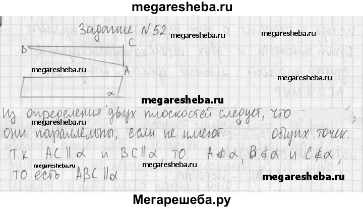 52. Две стороны треугольника параллельны плоскости α. Докажите, что и третья сторона параллельна плоскости α.