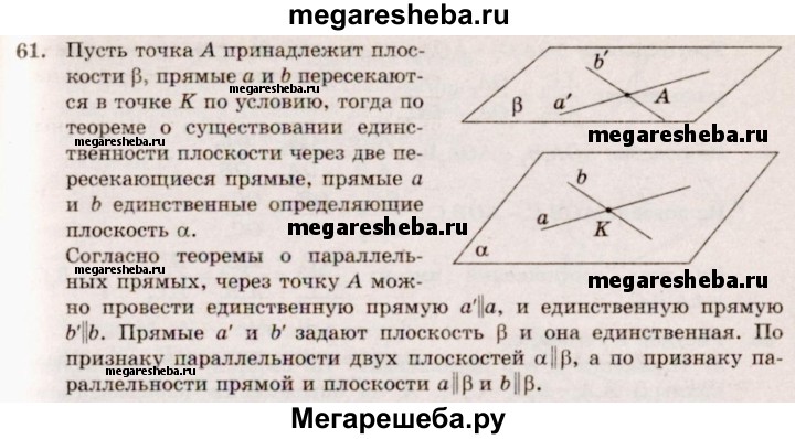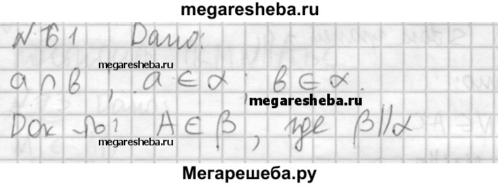 Подробный решебник (ГДЗ) по Геометрии за 10‐11 (десятый‐одиннадцатый) класс - готовый ответ 10 класс - 61. Авторы учебника: Атанасян, Бутузов, Кадомцев, Киселева, Позняк, Базовый и углубленный уровень. Издательство: Просвещение 2015-2023.