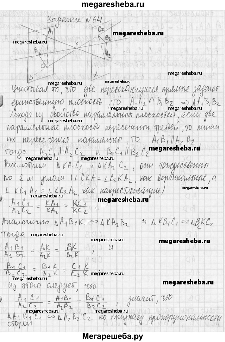 Подробный решебник (ГДЗ) по Геометрии за 10‐11 (десятый‐одиннадцатый) класс - готовый ответ 10 класс - 64. Авторы учебника: Атанасян, Бутузов, Кадомцев, Киселева, Позняк, Базовый и углубленный уровень. Издательство: Просвещение 2015-2023.