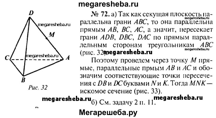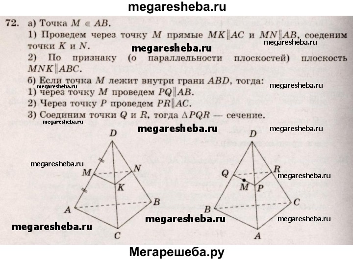 Подробный решебник (ГДЗ) по Геометрии за 10‐11 (десятый‐одиннадцатый) класс - готовый ответ 10 класс - 72. Авторы учебника: Атанасян, Бутузов, Кадомцев, Киселева, Позняк, Базовый и углубленный уровень. Издательство: Просвещение 2015-2023.
