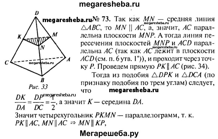 Подробный решебник (ГДЗ) по Геометрии за 10‐11 (десятый‐одиннадцатый) класс - готовый ответ 10 класс - 73. Авторы учебника: Атанасян, Бутузов, Кадомцев, Киселева, Позняк, Базовый и углубленный уровень. Издательство: Просвещение 2015-2023.