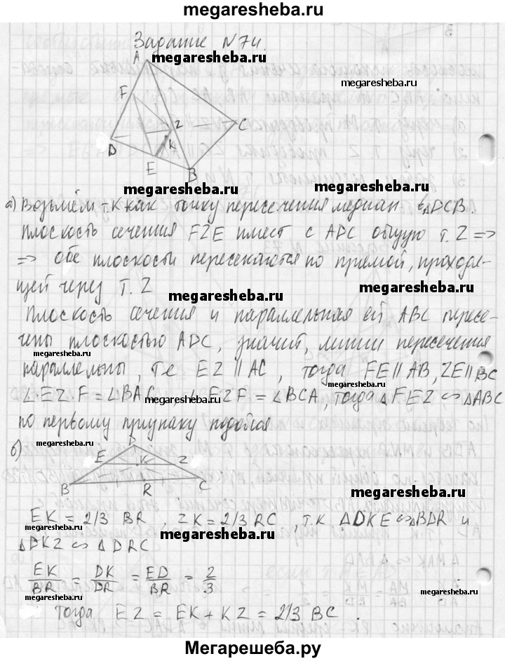 Подробный решебник (ГДЗ) по Геометрии за 10‐11 (десятый‐одиннадцатый) класс - готовый ответ 10 класс - 74. Авторы учебника: Атанасян, Бутузов, Кадомцев, Киселева, Позняк, Базовый и углубленный уровень. Издательство: Просвещение 2015-2023.