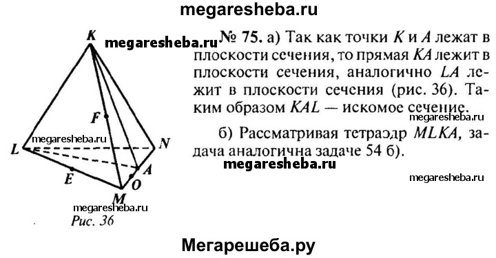 Подробный решебник (ГДЗ) по Геометрии за 10‐11 (десятый‐одиннадцатый) класс - готовый ответ 10 класс - 75. Авторы учебника: Атанасян, Бутузов, Кадомцев, Киселева, Позняк, Базовый и углубленный уровень. Издательство: Просвещение 2015-2023.