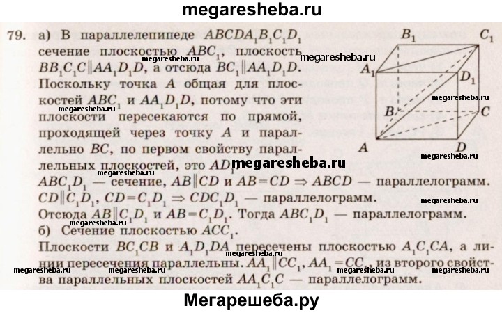 79. Изобразите параллелепипед ABCDA₁B₁C₁D₁ и постройте его сечение: а) плоскостью АВС₁ б) плоскостью АСС₁ Докажите, что построенные сечения являются параллелограммами.
