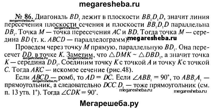 Подробный решебник (ГДЗ) по Геометрии за 10‐11 (десятый‐одиннадцатый) класс - готовый ответ 10 класс - 86. Авторы учебника: Атанасян, Бутузов, Кадомцев, Киселева, Позняк, Базовый и углубленный уровень. Издательство: Просвещение 2015-2023.