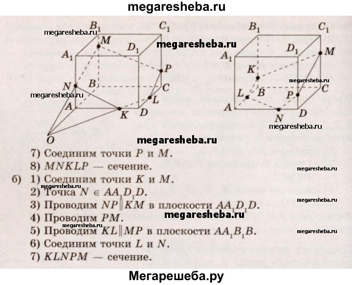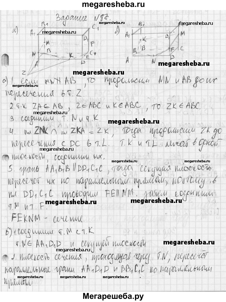 87. Изобразите параллелепипед ABCDA₁B₁C₁D₁ и постройте его сечение плоскостью MNK, где точки М, N и К лежат соответственно на ребрах: a) BB₁, AA₁, AD; б) СС₁, AD, ВВ₁.