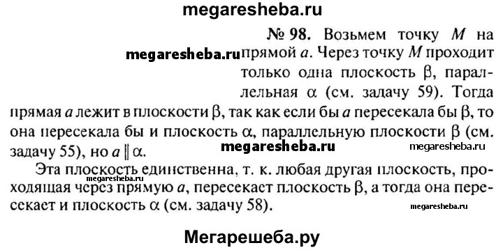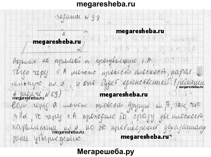 98. Прямая а параллельна плоскости α. Существует ли плоскость, проходящая через прямую а и параллельная плоскости α? Если существует, то сколько таких плоскостей? Ответ обоснуйте.