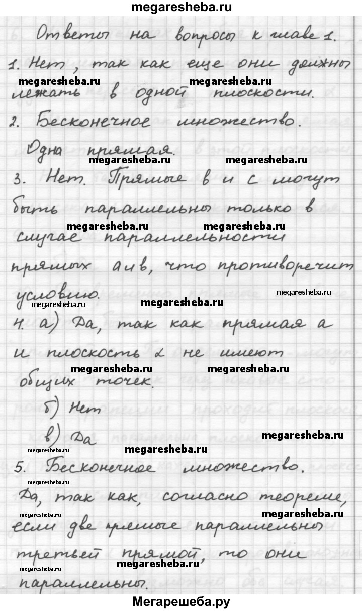 ГДЗ по геометрии 10‐11 класс Атанасян Базовый и углубленный уровень 10 класс ответы на вопросы - Глава 1