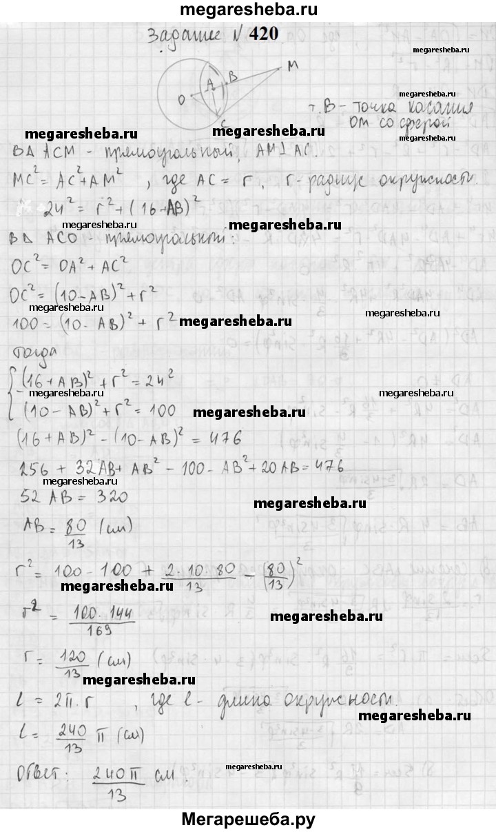Подробный решебник (ГДЗ) по Геометрии за 10‐11 (десятый‐одиннадцатый) класс - готовый ответ 11 класс - 420. Авторы учебника: Атанасян, Бутузов, Кадомцев, Киселева, Позняк, Базовый и углубленный уровень. Издательство: Просвещение 2015-2023.