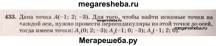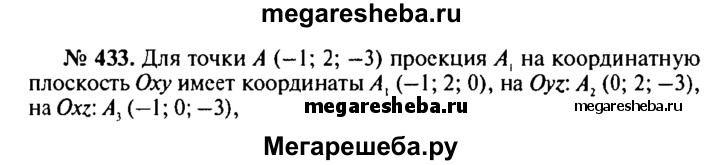 433. На каждой из координатных плоскостей найдите такую точку, расстояние от которой до точки А (-1; 2; -3) является наименьшим среди всех расстояний от точек этой координатной плоскости до точки А.