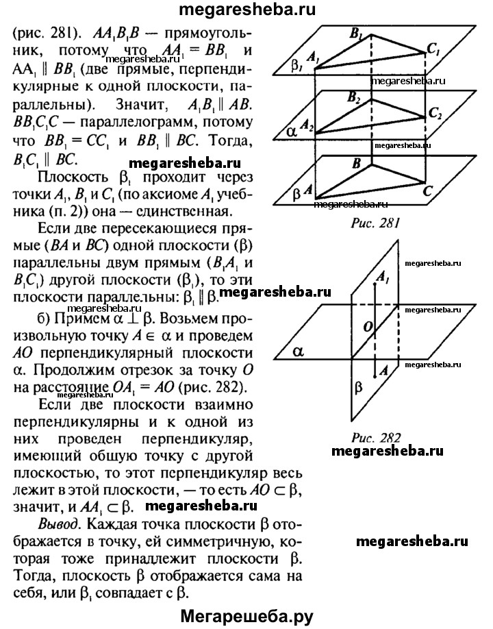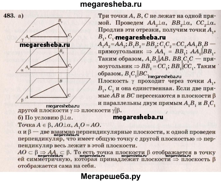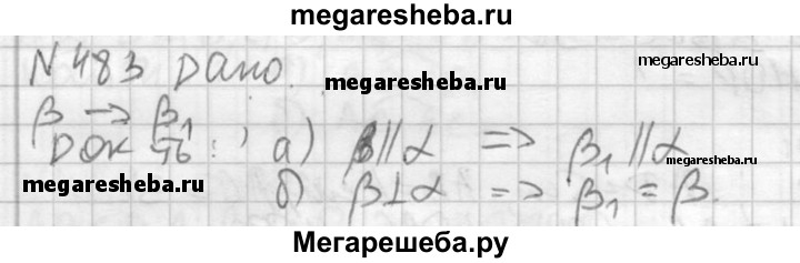 483. При зеркальной симметрии относительно плоскости α плоскость β отображается на плоскость β₁. Докажите, что если: а) β||α, то β₁|| α; б) β перпендикулярна α, то β₁ совпадает с β.