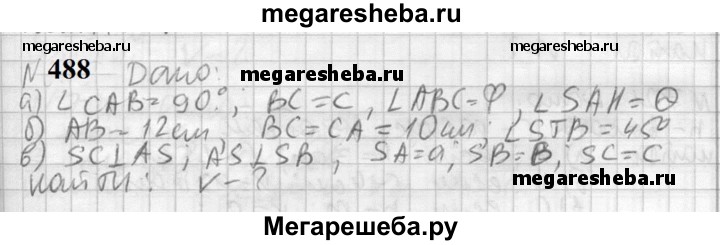 Подробный решебник (ГДЗ) по Геометрии за 10‐11 (десятый‐одиннадцатый) класс - готовый ответ 11 класс - 488. Авторы учебника: Атанасян, Бутузов, Кадомцев, Киселева, Позняк, Базовый и углубленный уровень. Издательство: Просвещение 2015-2023.