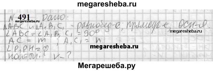 Подробный решебник (ГДЗ) по Геометрии за 10‐11 (десятый‐одиннадцатый) класс - готовый ответ 11 класс - 491. Авторы учебника: Атанасян, Бутузов, Кадомцев, Киселева, Позняк, Базовый и углубленный уровень. Издательство: Просвещение 2015-2023.