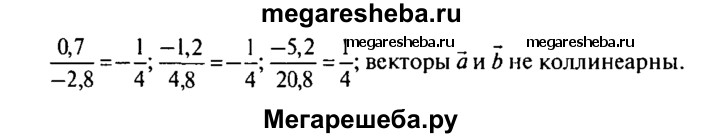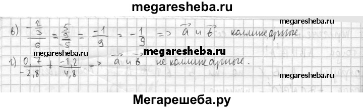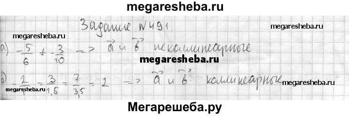 491. Коллинеарны ли векторы: а) а {-5; 3; -1} и b {6; -10; -2}; б) а {-2; 3; 7} и b {-1; 1,5; 3,5}; в) a{-2/3 ;5/9 ;-1 } и b {6;-5; 9}; г) a {0,7; -1,2; -5,2} и b {-2,8; 4,8; -20,8}?