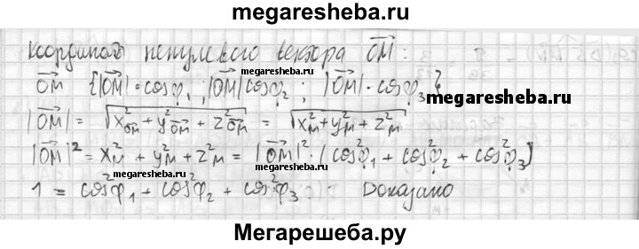 514. Лучи OA, ОВ, ОС и ОМ расположены так, что угол AOB = углу BOC = углу COA = 90°, угол AOM = ф₁, угол BOM = ф₂, угол COM = ф₃. Докажите, что cos2ф₁ + cos2ф₂ + cos2ф₃ = 1.