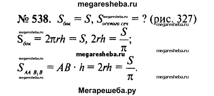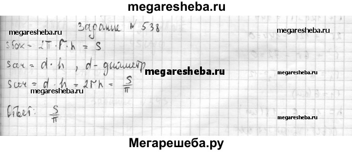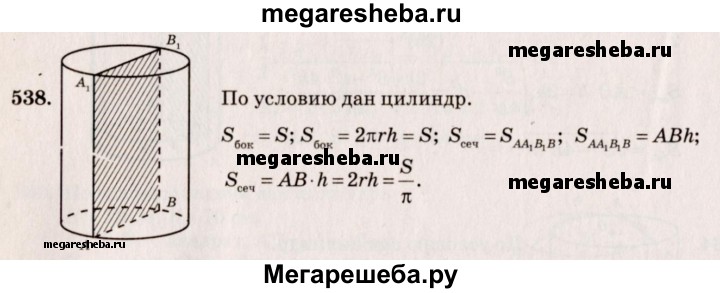 538. Площадь боковой поверхности цилиндра равна S. Найдите площадь осевого сечения цилиндра.
