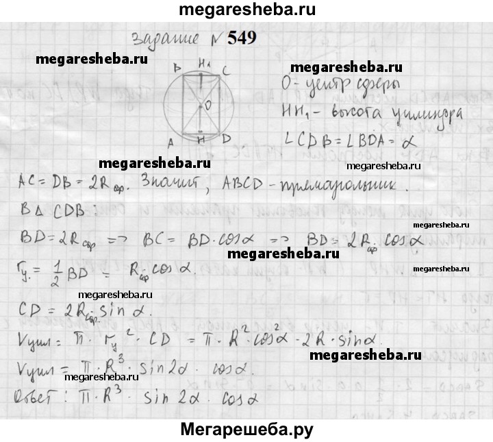 Подробный решебник (ГДЗ) по Геометрии за 10‐11 (десятый‐одиннадцатый) класс - готовый ответ 11 класс - 549. Авторы учебника: Атанасян, Бутузов, Кадомцев, Киселева, Позняк, Базовый и углубленный уровень. Издательство: Просвещение 2015-2023.